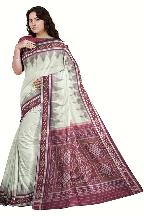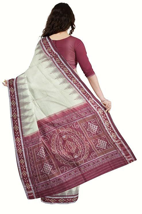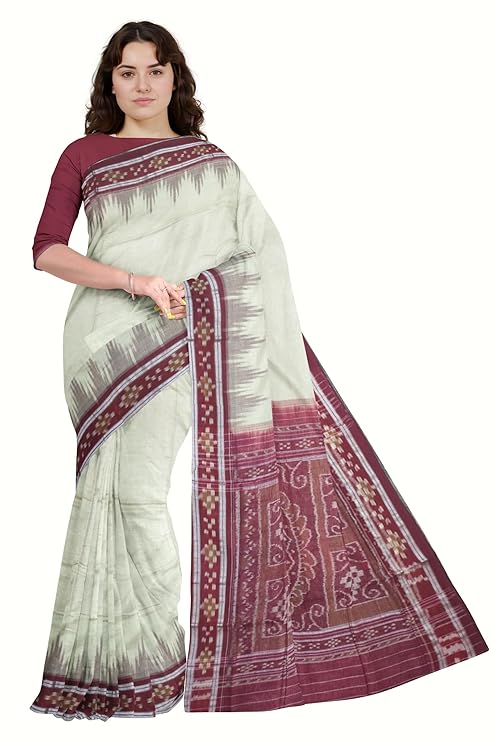 Odisha Sambalpuri Handloom Ikat Women's Cotton Saree Traditional Craftsmanship Double Ikat Weaving Floral and Rich Cultural Heritage (M-29)