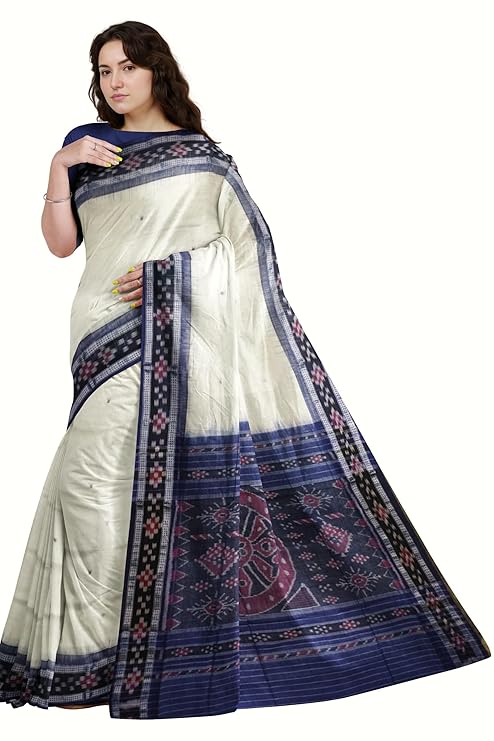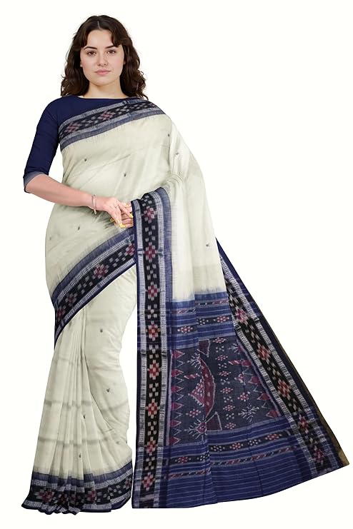 Odisha Sambalpuri Handloom Ikat Women's Cotton Saree Traditional Craftsmanship Double Ikat Weaving Floral and Rich Cultural Heritage (M-6)