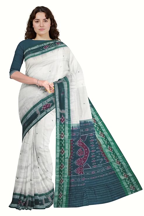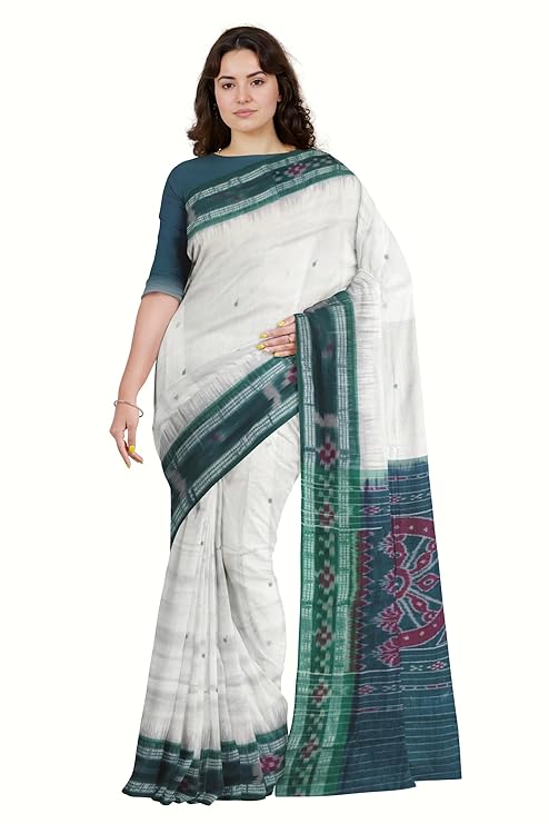 Odisha Sambalpuri Handloom Ikat Women's Cotton Saree Traditional Craftsmanship Double Ikat Weaving Floral and Rich Cultural Heritage (M-7)
