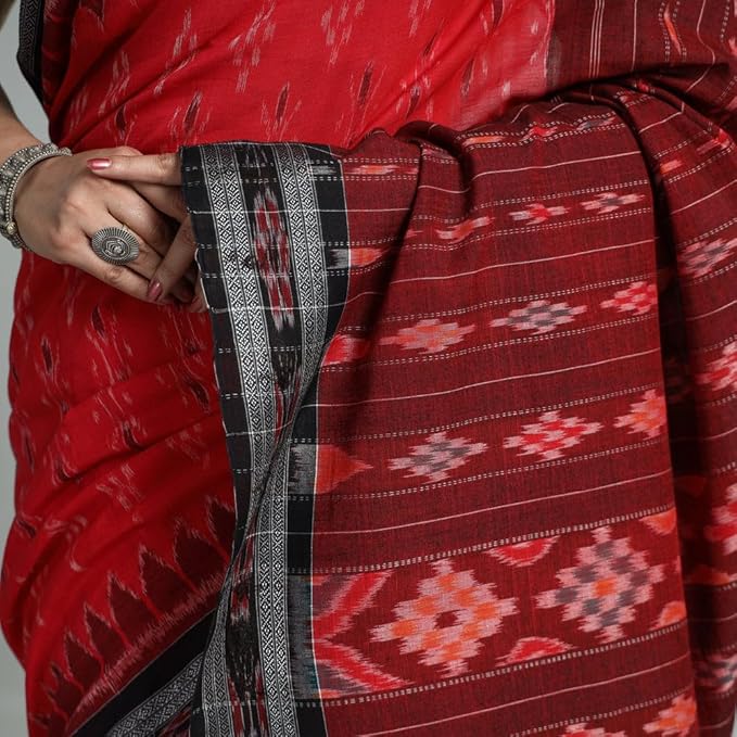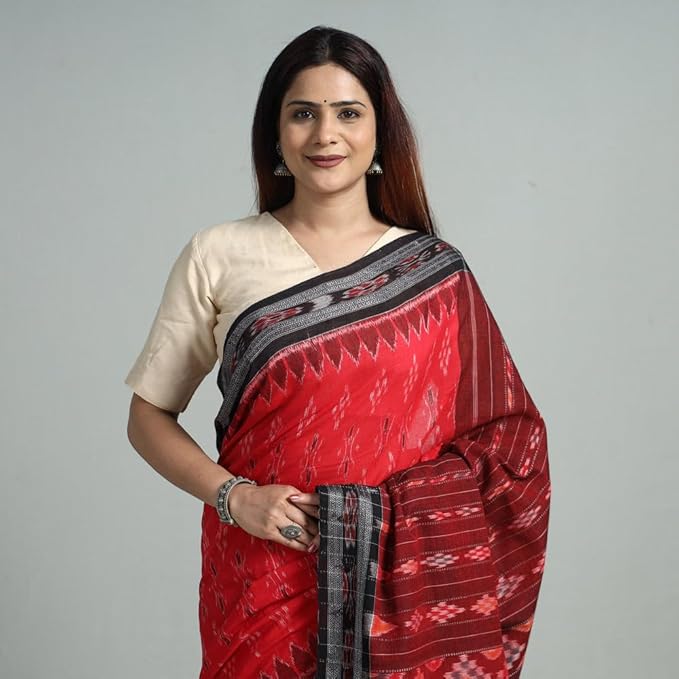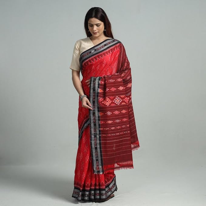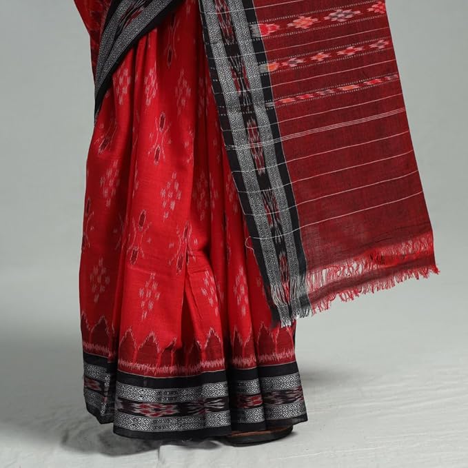 Odisha Sambalpuri Handloom Ikat Women's Cotton Saree Traditional Double Ikat Weaving Floral and Rich Cultural Ethnic Saree Without Blouse