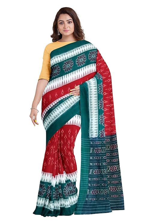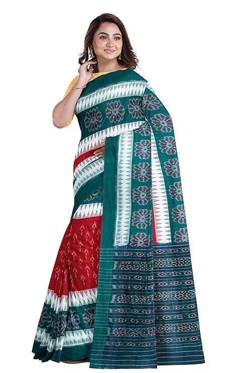 Odisha Sambalpuri Handloom Ikat Women's Cotton Saree, Utkal Handloom Handmade Pure Cotton Khandua Saree, Ikkat Orissa Traditional Handloom Saree Without Blouse