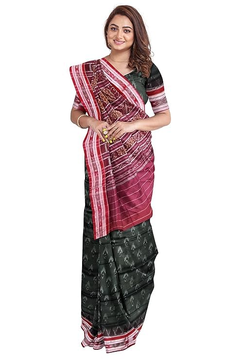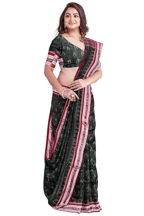Odisha Sambalpuri Handloom Ikat Women's Cotton Saree, Utkal Handloom Handmade Pure Cotton Khandua Saree, Ikkat Orissa Traditional Handloom Saree Without Blouse