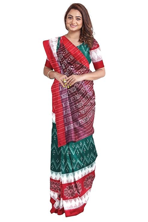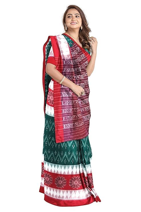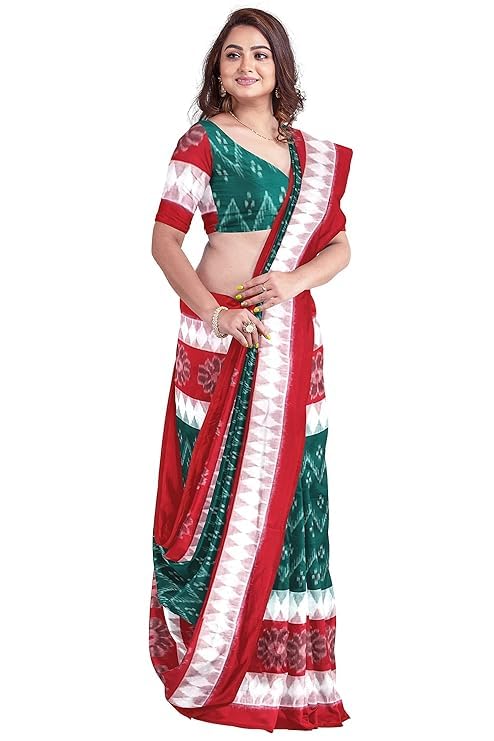Odisha Sambalpuri Handloom Ikat Women's Cotton Saree, Utkal Handloom Handmade Pure Cotton Khandua Saree, Ikkat Orissa Traditional Handloom Saree Without Blouse