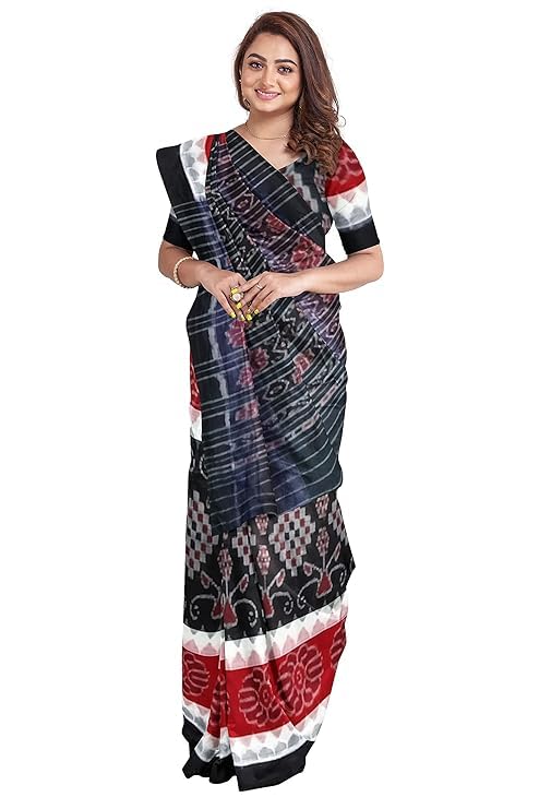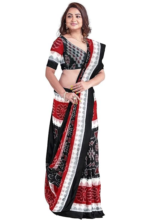 Odisha Sambalpuri Handloom Ikat Women's Cotton Saree, Utkal Handloom Handmade Pure Cotton Khandua Saree, Ikkat Orissa Traditional Handloom Saree Without Blouse