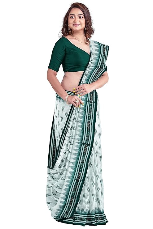 Odisha Sambalpuri Handloom Ikat Women's Cotton Saree, Utkal Handloom Handmade Pure Cotton Khandua Saree, Ikkat Orissa Traditional Handloom Saree Without Blouse