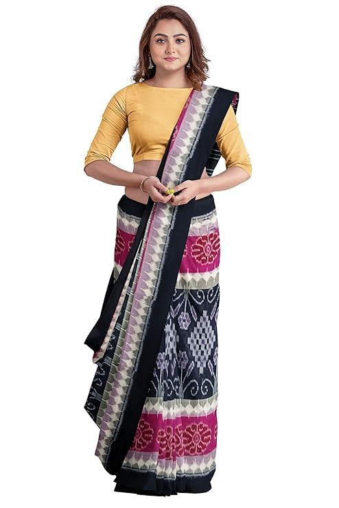 Odisha Sambalpuri Handloom Ikat Women's Cotton Saree, Utkal Handloom Handmade Pure Cotton Khandua Saree, Ikkat Orissa Traditional Handloom Saree Without Blouse