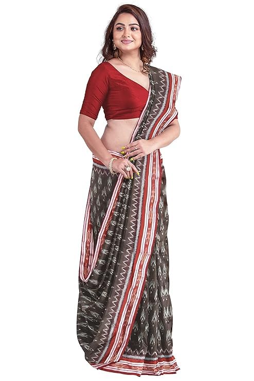Odisha Sambalpuri Handloom Ikat Women's Cotton Saree, Utkal Handloom Handmade Pure Cotton Khandua Saree, Ikkat Orissa Traditional Handloom Saree Without Blouse