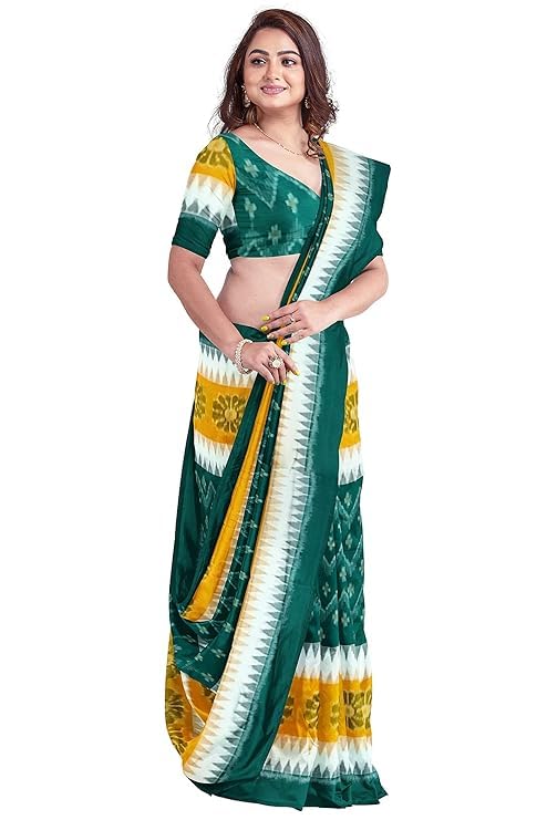 Odisha Sambalpuri Handloom Ikat Women's Cotton Saree, Utkal Handloom Handmade Pure Cotton Khandua Saree, Ikkat Orissa Traditional Handloom Saree Without Blouse