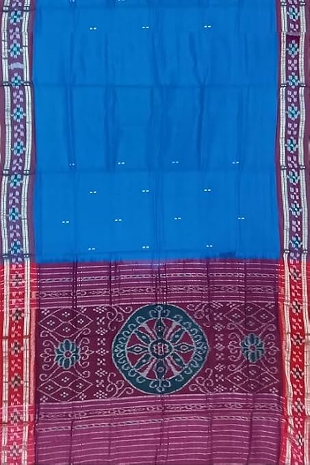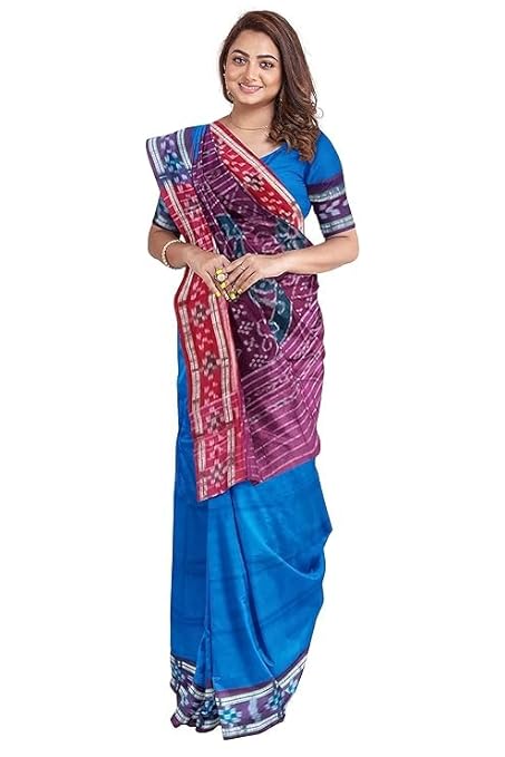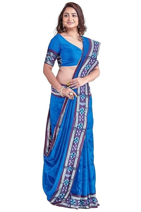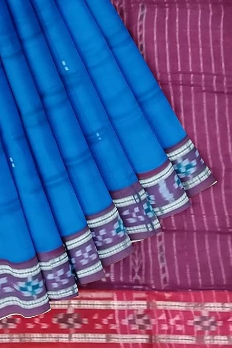 Traditional Handloom Saree, Blue and Purple with Ikat Border Pattern, Cotton Blend
