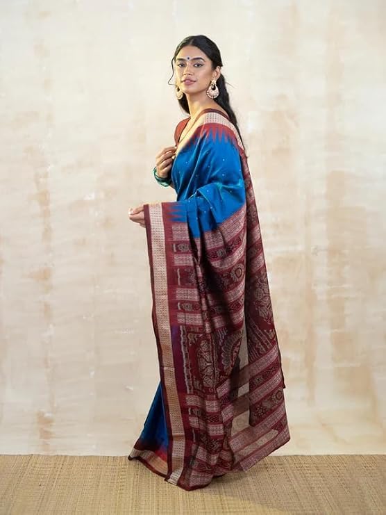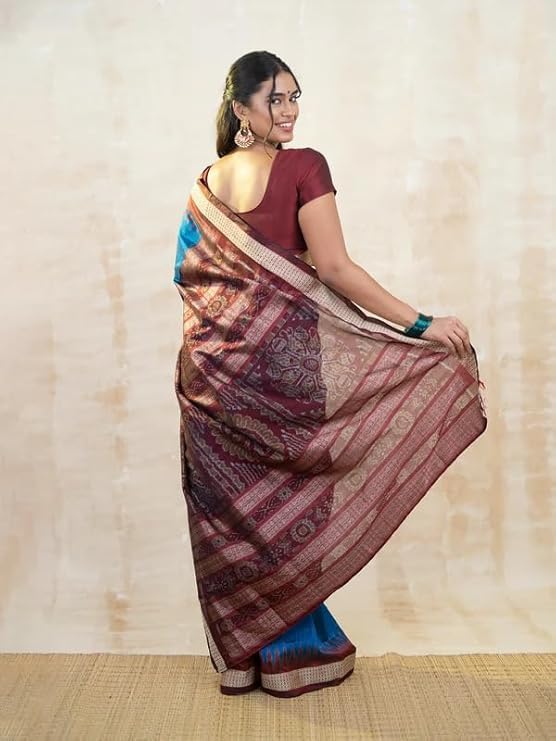 Utkal Handloom Handmade Pure Bomkai Silk Saree Khandua Natural Silk Ikkat Sambalpuri Saree For Women/Ethnic Wear/Traditonal Saree/Handloom Saree With Regular Fit Blouse Piece