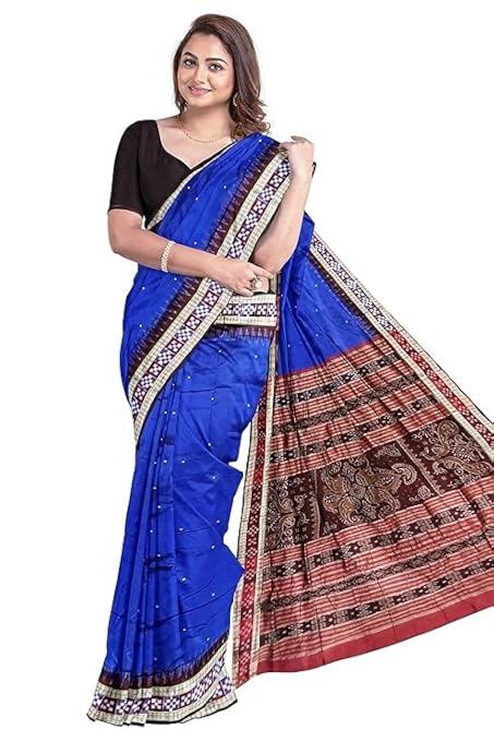 Odisha Handloom Handmade Pure Bomkai Silk Saree Khandua Natural Silk Ikkat Sambalpuri Saree For Women/Ethnic Wear/Traditonal Saree/Handloom Saree With Regular Fit Blouse Piece