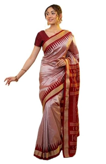 Odisha Handloom Handmade Pure Bomkai Silk Saree Khandua Natural Silk Ikkat Sambalpuri Saree For Women/Ethnic Wear/Traditonal Saree/Handloom Saree With Regular Fit Blouse Piece