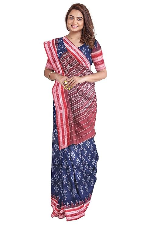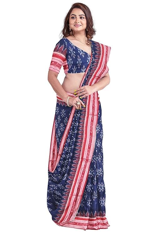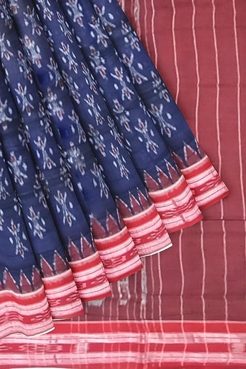 Odisha Sambalpuri Handloom Ikat Women Cotton Saree, Odisha Handloom Handmade Pure Cotton Khandua Saree, Ikkat Orissa Traditional Handloom Saree Without Blouse EMS22