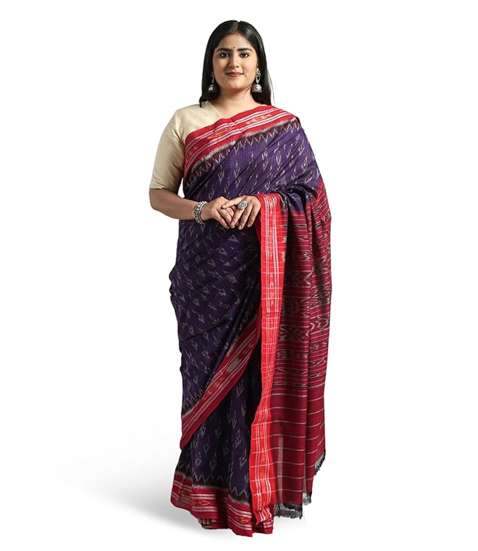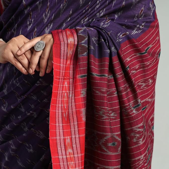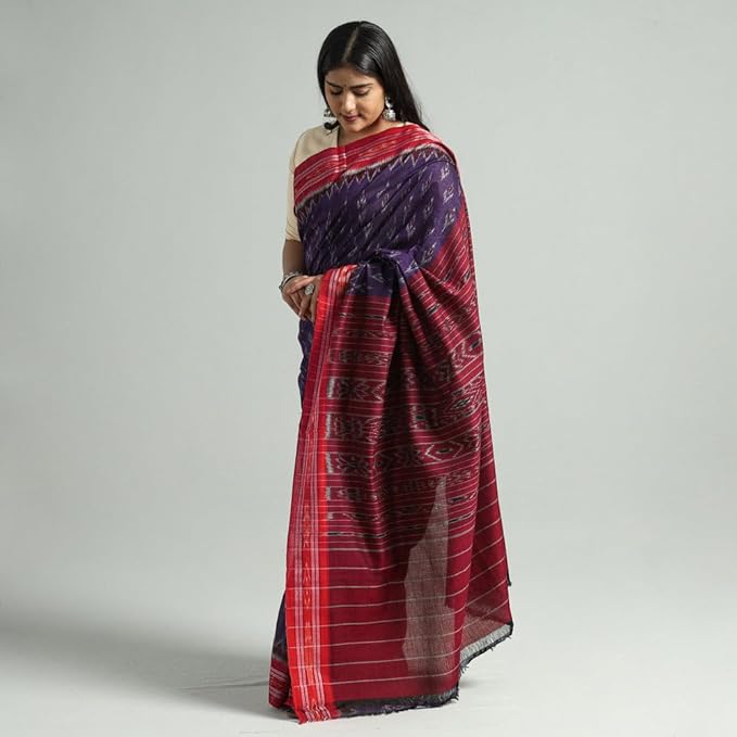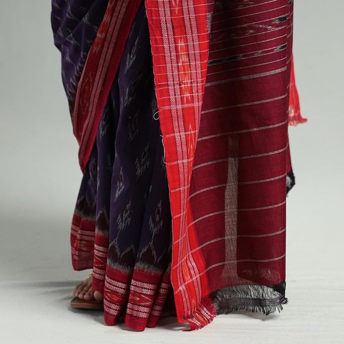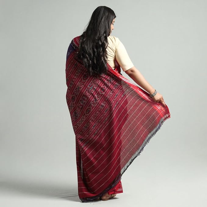 Odisha Sambalpuri Handloom Ikat Women's Cotton Saree Traditional Craftsmanship Double Ikat Weaving Floral and Rich Cultural Ethnic Saree Without Blouse