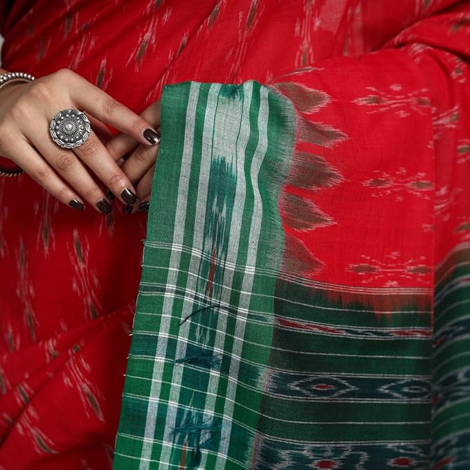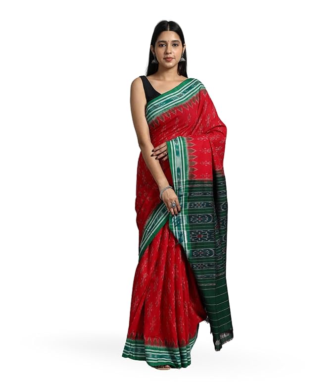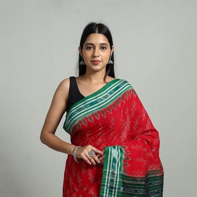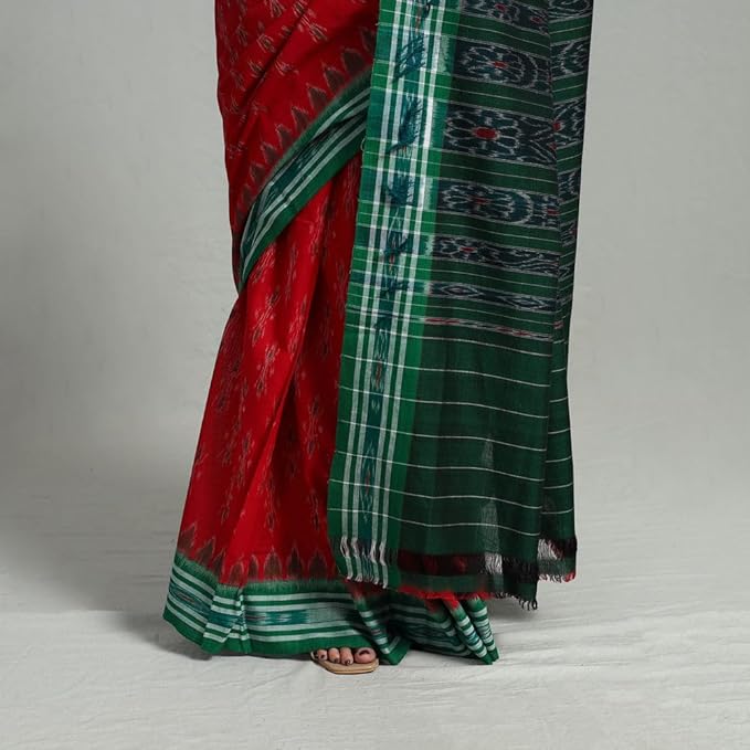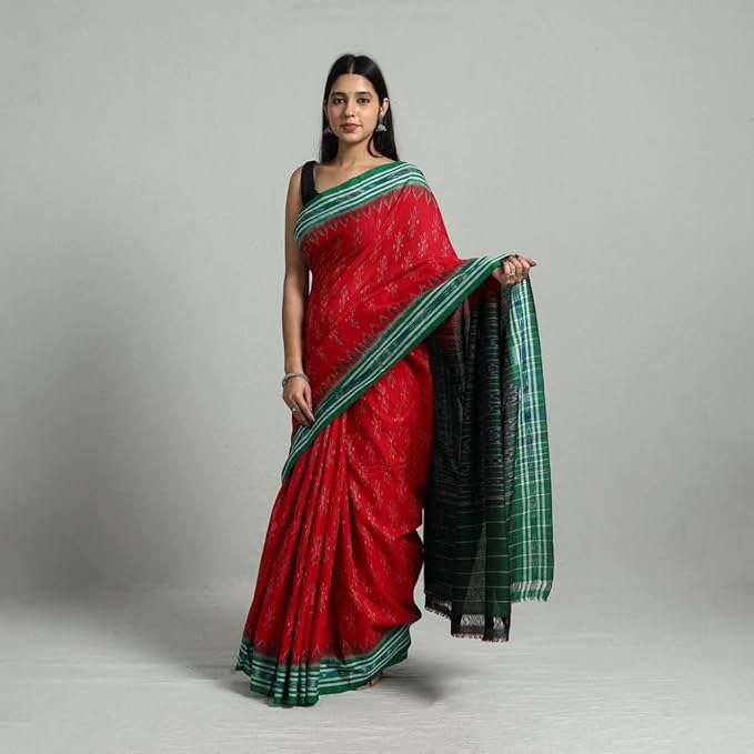 Odisha Sambalpuri Handloom Ikat Women's Cotton Saree Traditional Craftsmanship Double Ikat Weaving Floral and Rich Cultural Handmade Ethnic Saree for Women