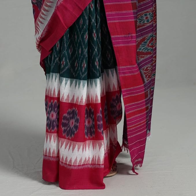 Odisha Sambalpuri Handloom Ikat Women's Cotton Saree Traditional Craftsmanship Double Ikat Weaving Floral and Rich Cultural Handmade Ethnic Saree for Women