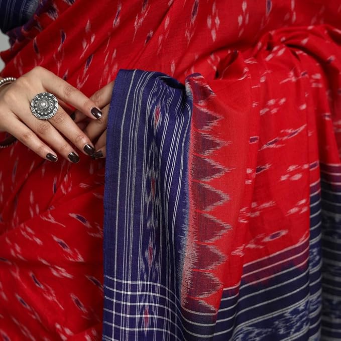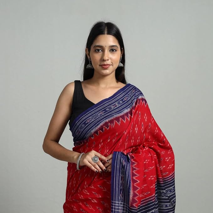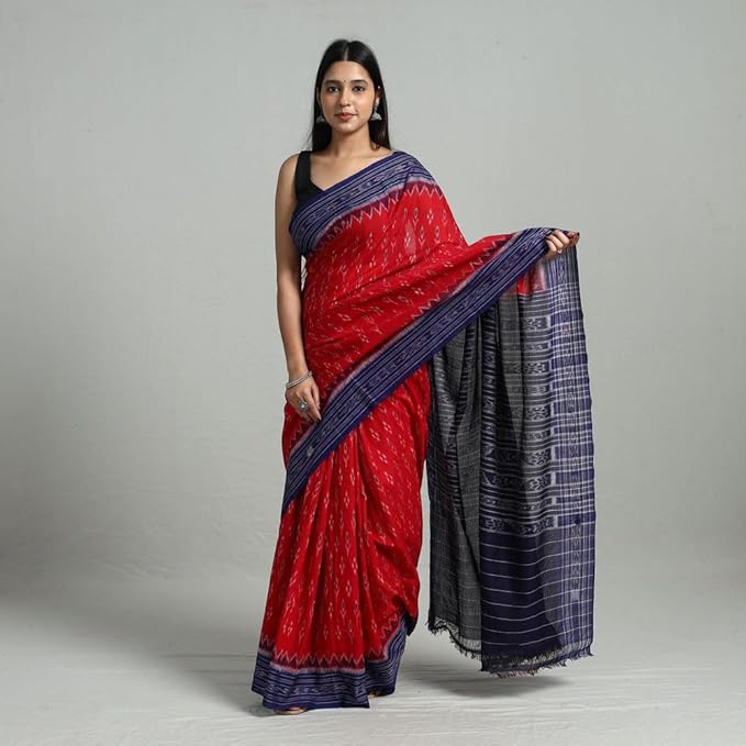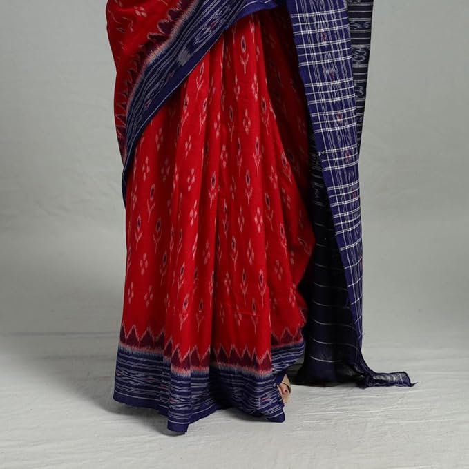 Odisha Sambalpuri Handloom Ikat Women's Cotton Saree Traditional Craftsmanship Double Ikat Weaving Floral and Rich Cultural Handmade Ethnic Saree for Women