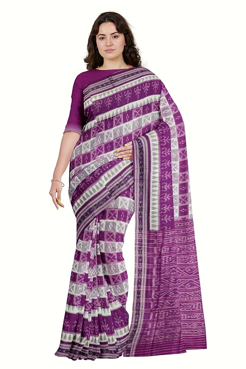 Odisha Sambalpuri Handloom Ikat Women's Cotton Saree Traditional Craftsmanship Double Ikat Weaving Floral and Rich Cultural Heritage (M-12)