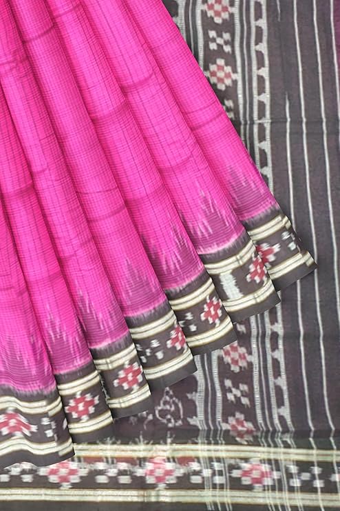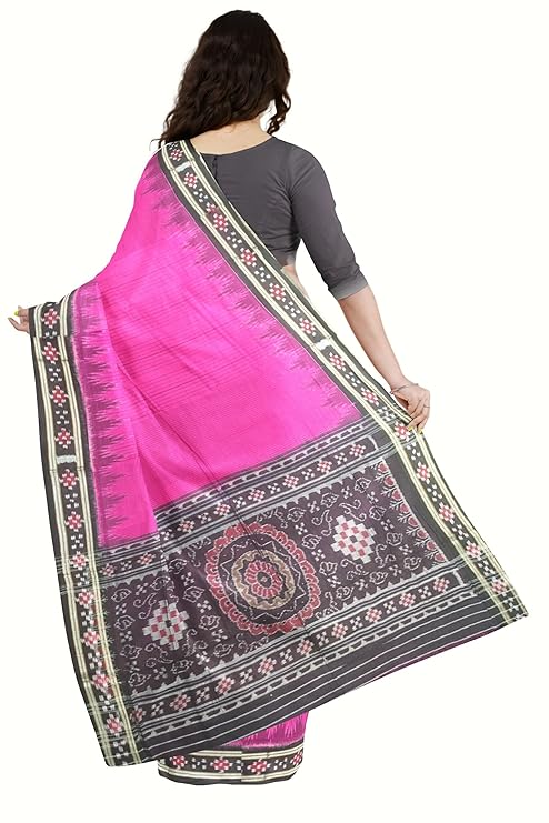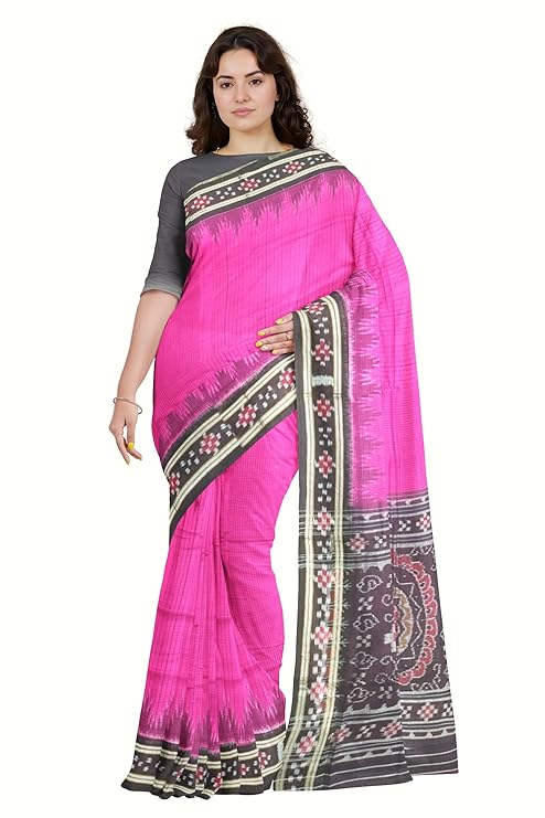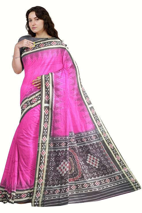 Odisha Sambalpuri Handloom Ikat Women's Cotton Saree Traditional Craftsmanship Double Ikat Weaving Floral and Rich Cultural Heritage (M-16)