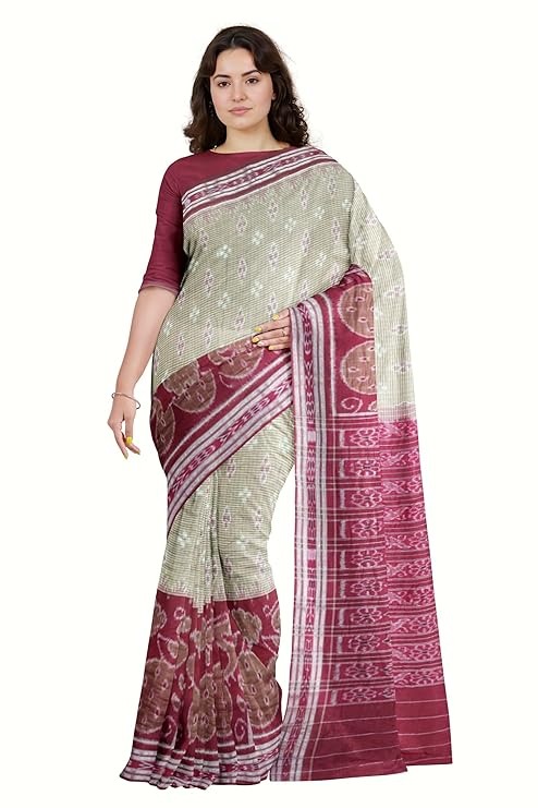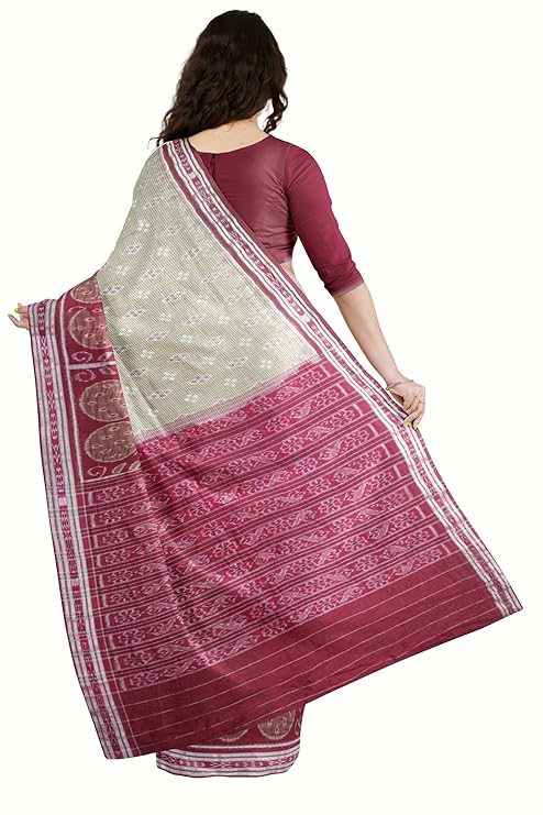 Odisha Sambalpuri Handloom Ikat Women's Cotton Saree Traditional Craftsmanship Double Ikat Weaving Floral and Rich Cultural Heritage (M-27)