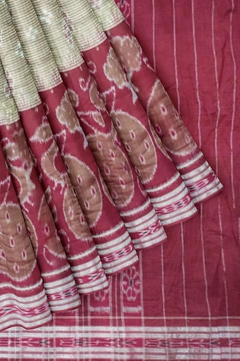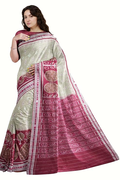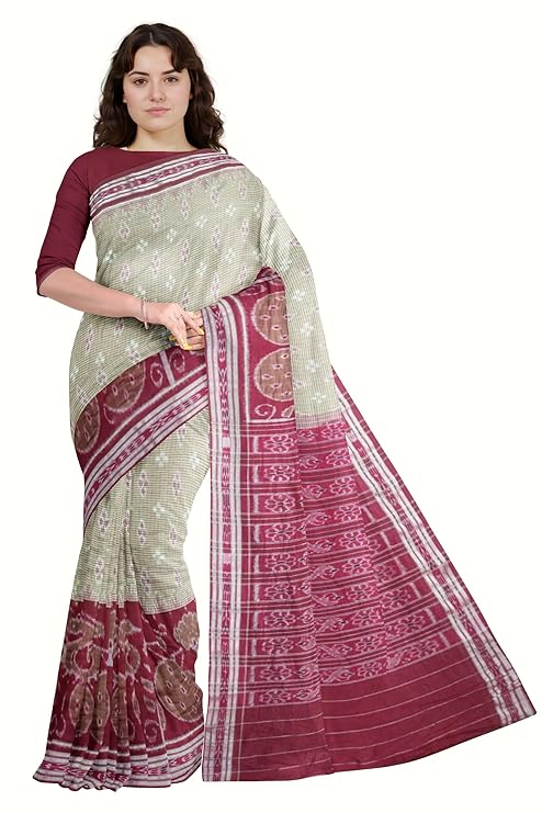 Odisha Sambalpuri Handloom Ikat Women's Cotton Saree Traditional Craftsmanship Double Ikat Weaving Floral and Rich Cultural Heritage (M-27)