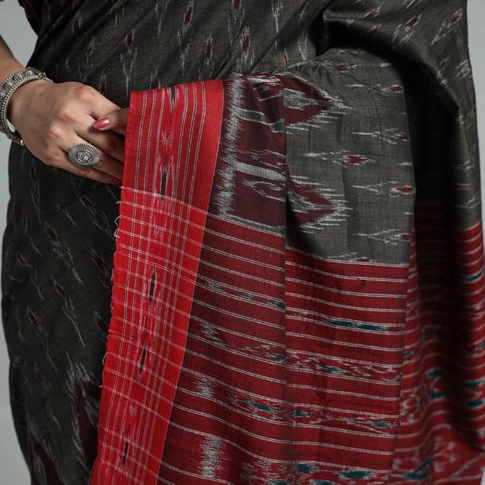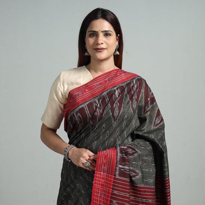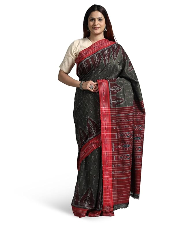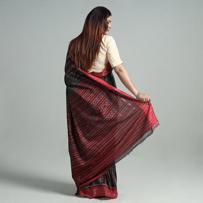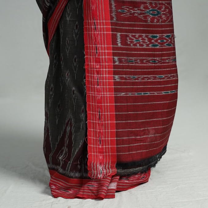 Odisha Sambalpuri Handloom Ikat Women's Cotton Saree Traditional Double Ikat Weaving Floral and Rich Cultural Ethnic Saree Without Blouse