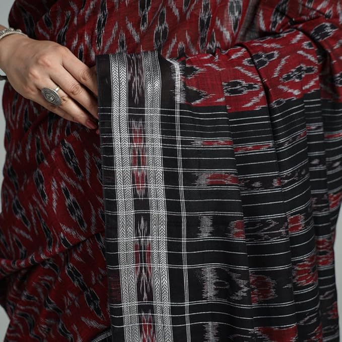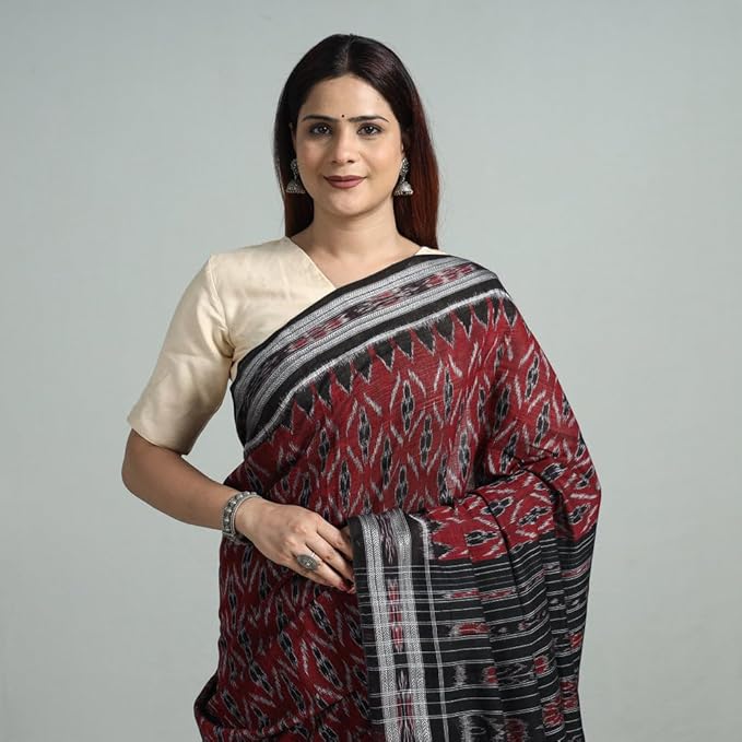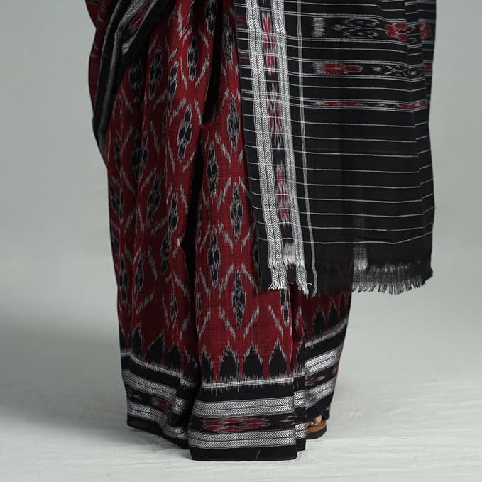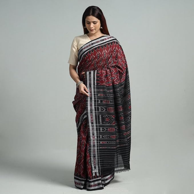 Odisha Sambalpuri Handloom Ikat Women's Cotton Saree Traditional Double Ikat Weaving Floral and Rich Cultural Ethnic Saree Without Blouse
