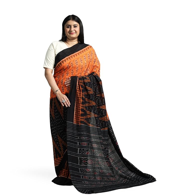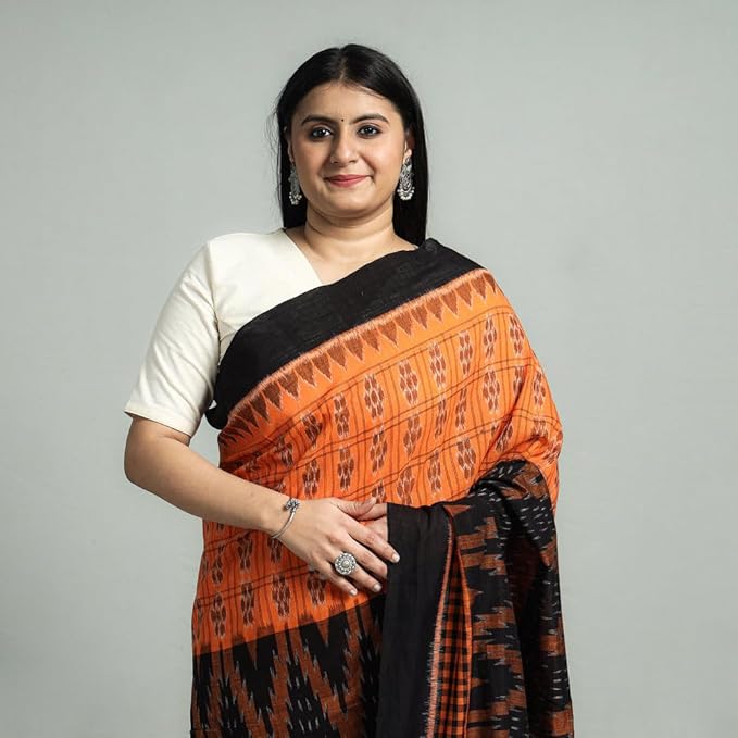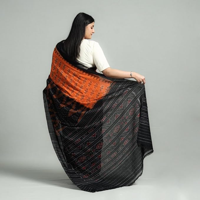 Odisha Sambalpuri Handloom Ikat Women's Pure Cotton Saree Traditional Craftsmanship Double Ikat Weaving Floral Handmade Ethnic Saree without Blouse Piece
