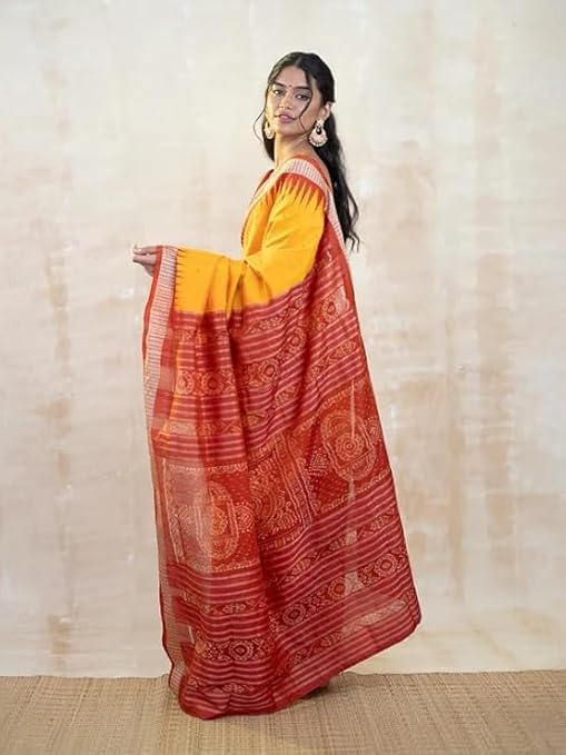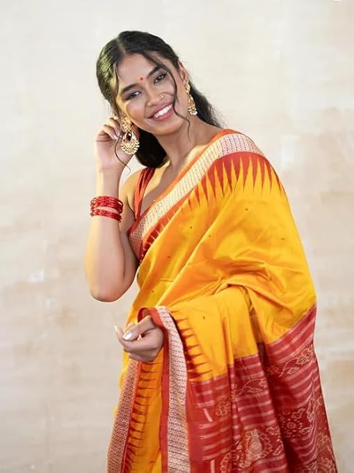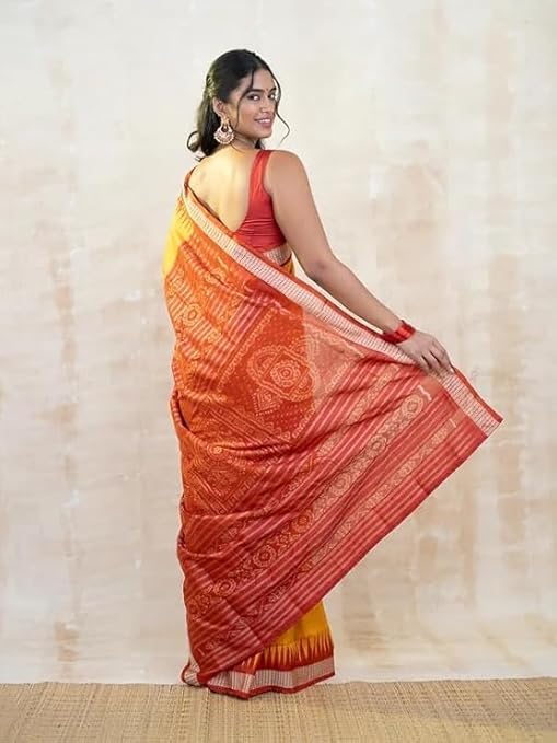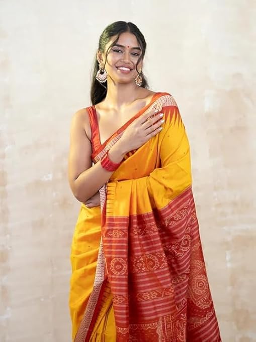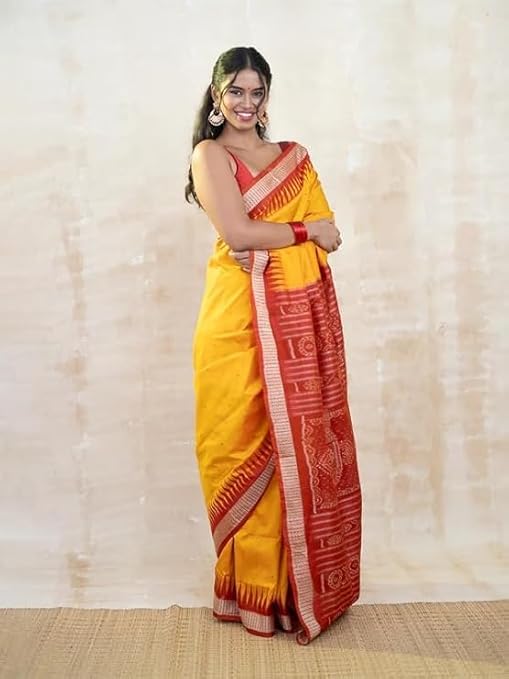 Utkal Handloom Handmade Pure Bomkai Silk Saree Khandua Natural Silk Ikkat Sambalpuri Saree For Women/Ethnic Wear/Traditonal Saree/Handloom Saree With Regular Fit Blouse Piece