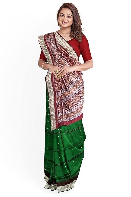 Utkal Handloom Handmade Pure Bomkai Silk Saree Khandua Natural Silk Ikkat Sambalpuri Saree For Women/Ethnic Wear/Traditonal Saree/Handloom Saree With Regular Fit Blouse Piece