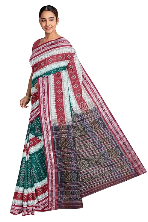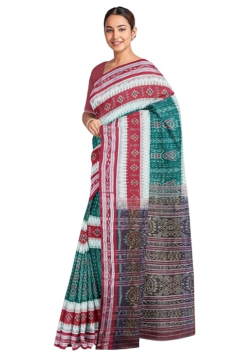 Utkal Handlooms Handmade Pure Cotton Khandua Saree, Ikkat Orissa Traditional Handloom Saree Without Blouse EMS10